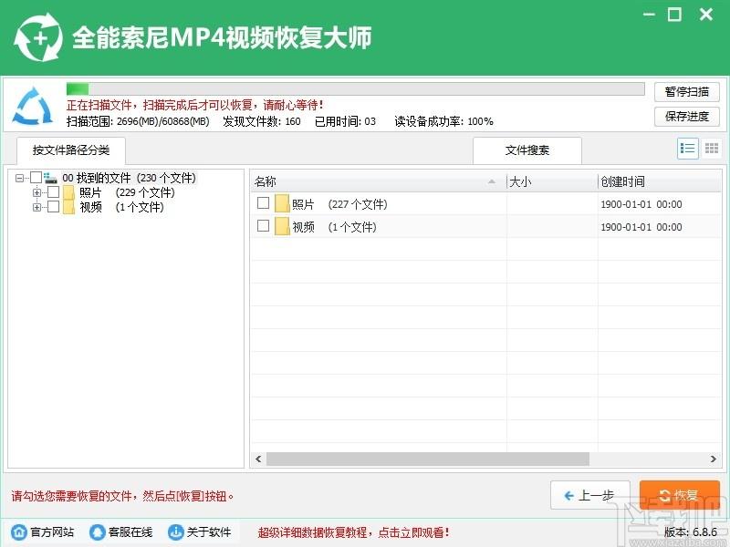 Tags:全能索尼MP4视频恢复大师下载,数据恢复,文件恢复